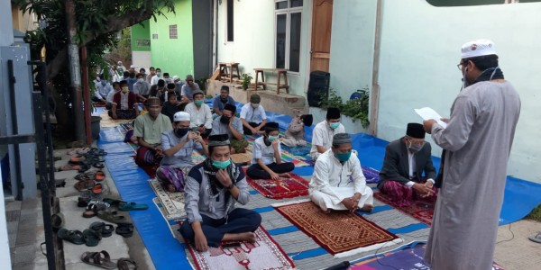 Telusur.co.id - Pelaksanaan shalat Idul Fitri 1441 Hijriyah di Perumahan Mayang Pratama, Kelurahan Mustikasari, Kecamatan Mustikajaya,