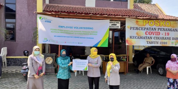 Telusur.co.id - Badan Penyelenggara Jaminan Sosial Ketenagakerjaan (BP Jamsostek) Bekasi Cikarang menyalurkan bantuan berupa beras untuk